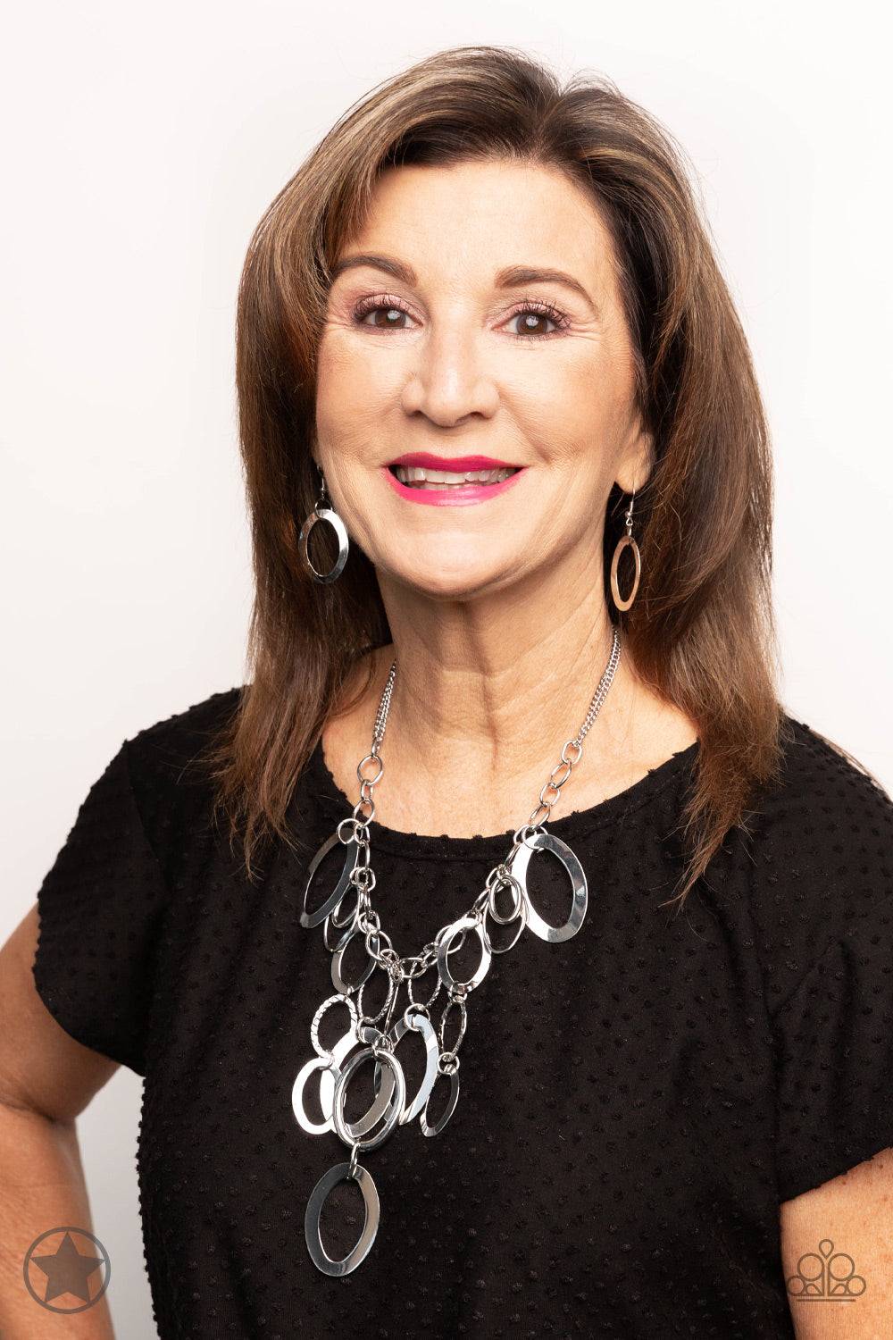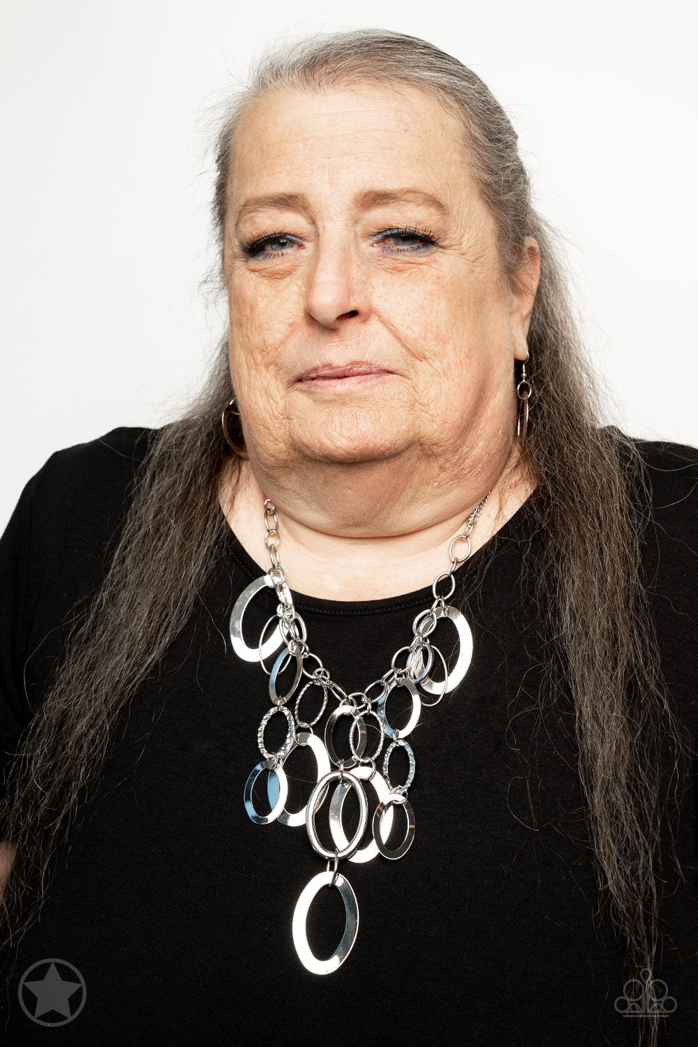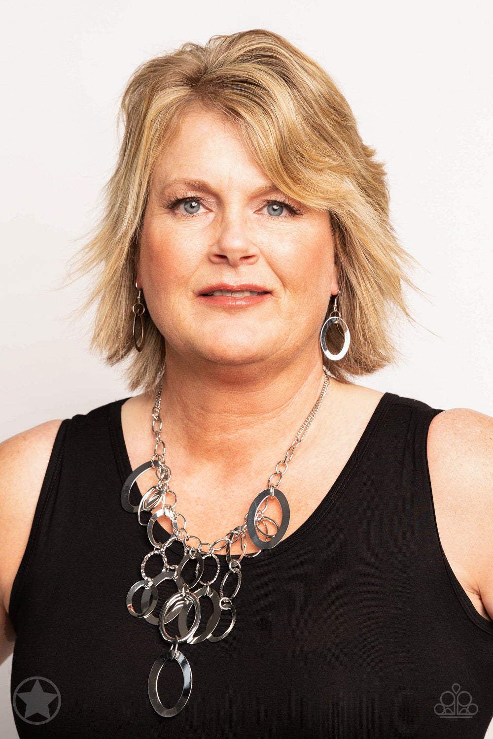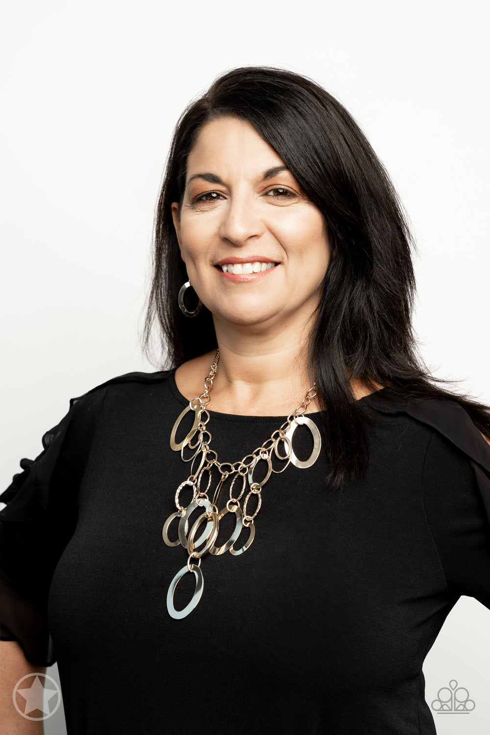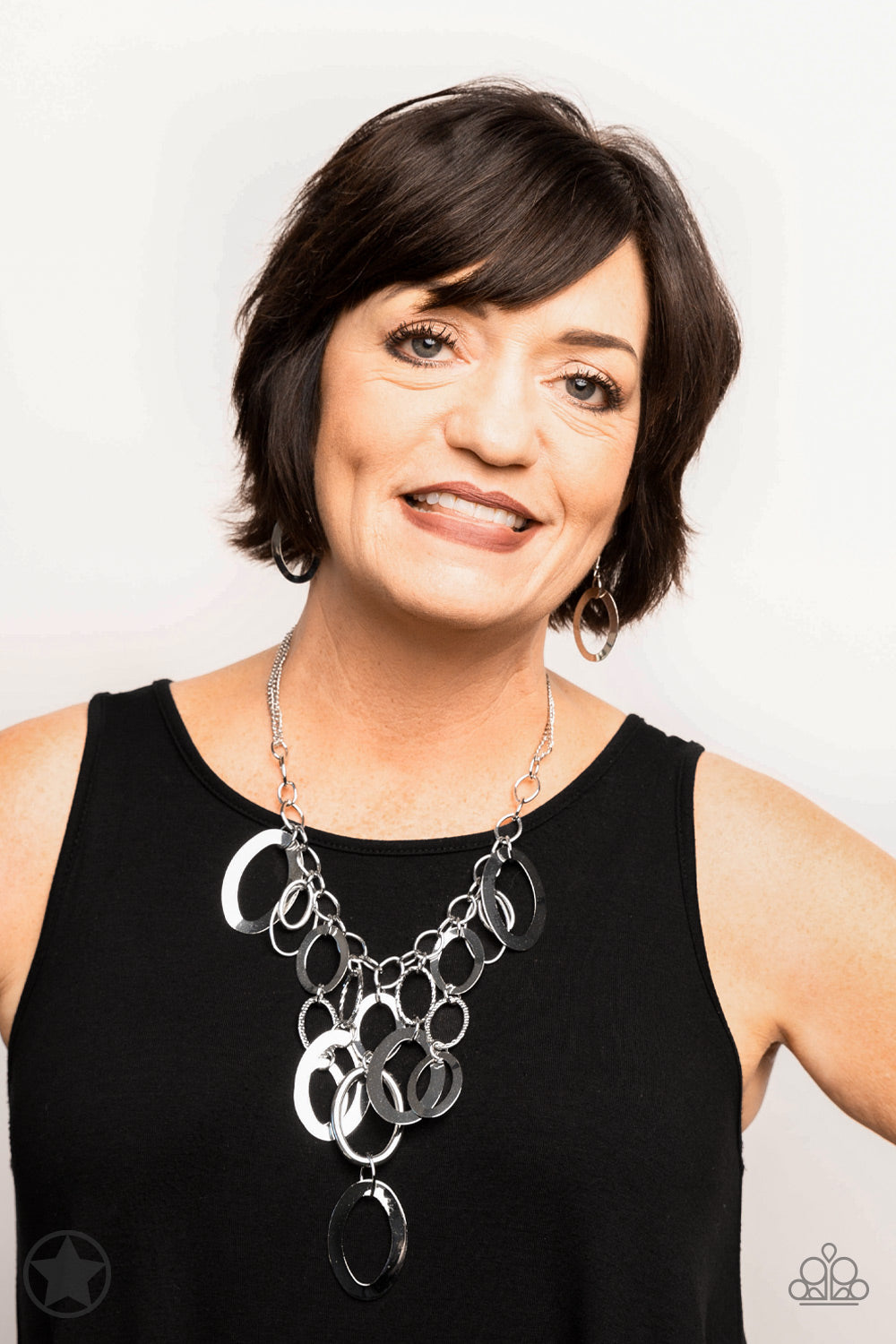 Large links and shimmering textured rings cascade below a chain freely, allowing for movement that makes a bold statement. Features an adjustable clasp closure.