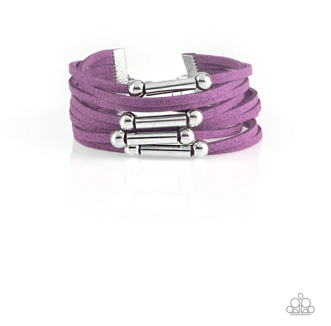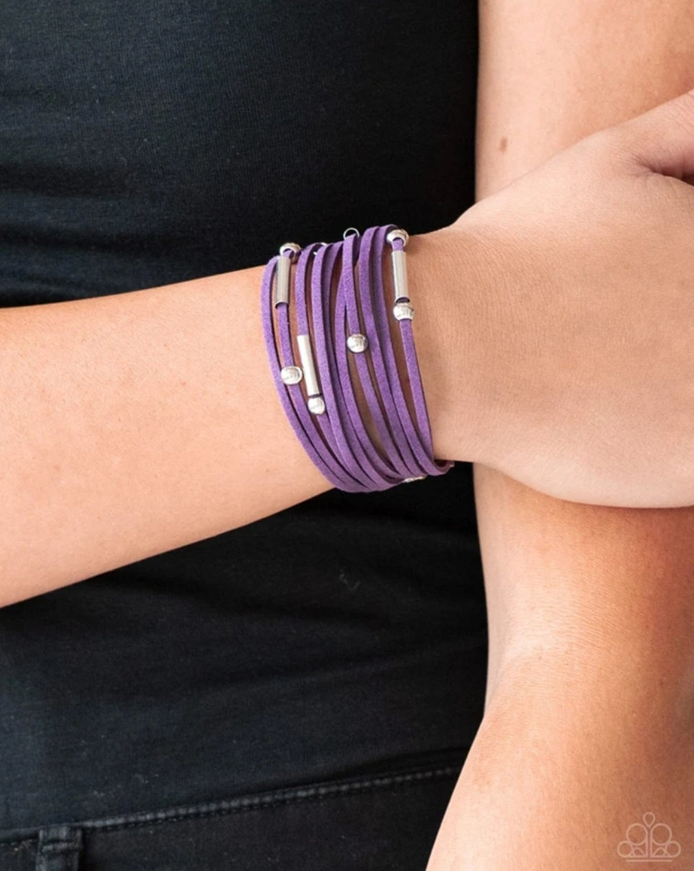 Dainty silver beads and shiny silver accents slide along rows of refreshing suede for a seasonal look. Features an adjustable clasp closure.