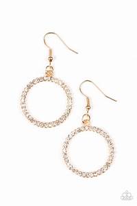Glittery rhinestones are encrusted along a circular frame, creating a bubbly frame. Earring attaches to a standard fishhook fitting.