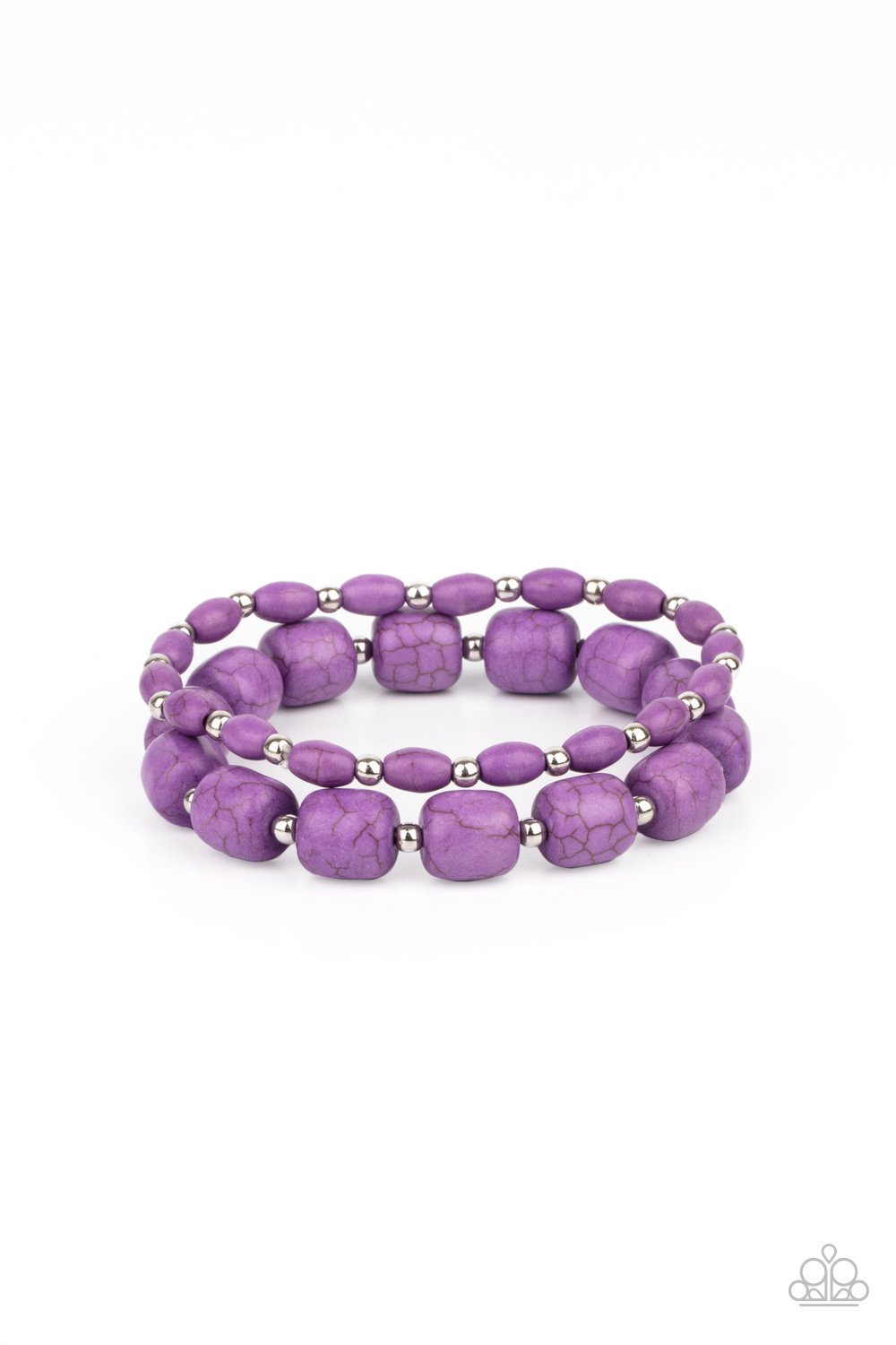 Dainty silver beads and mismatched stone beads are threaded along stretchy bands around the wrist, creating vivacious layers.
