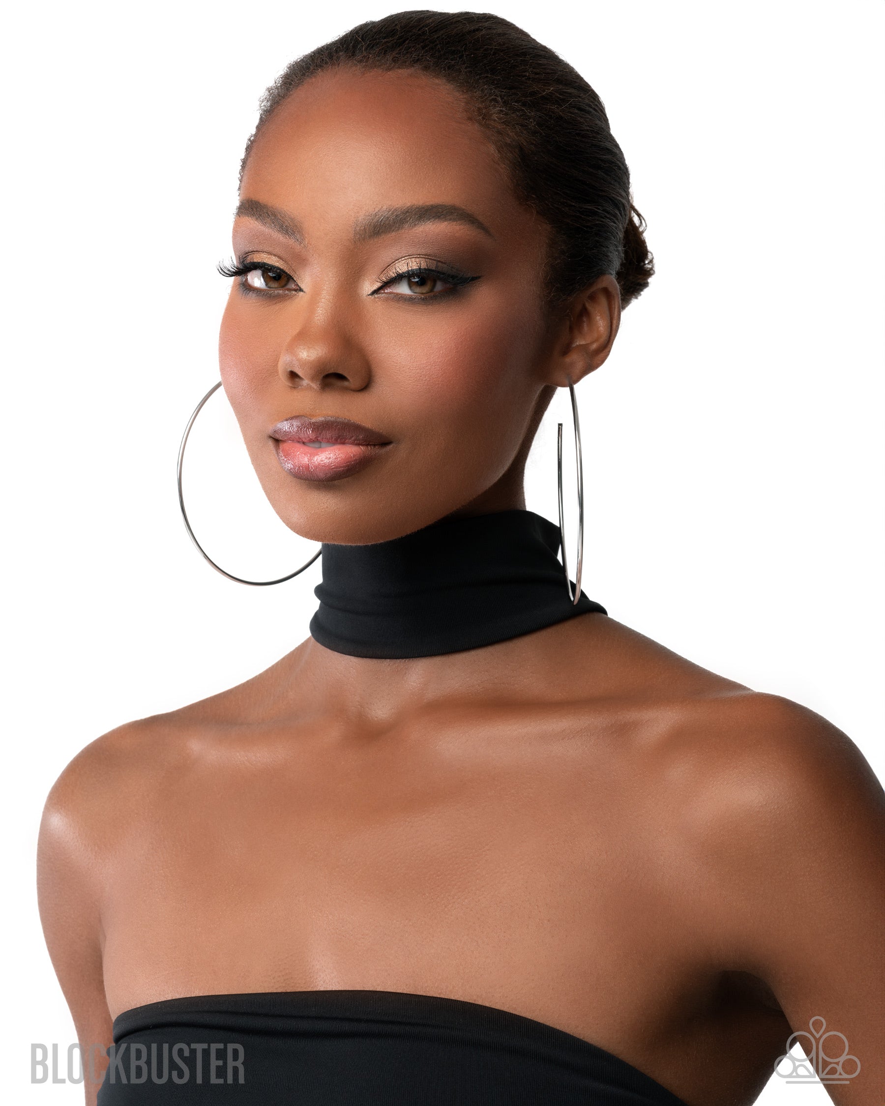 A classic silver bar curls into an outrageously oversized hoop for a trendsetting look. Earring attaches to a standard post fitting. Hoop measures approximately 4" in diameter.