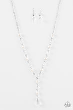 Dainty pearls alternate with crystal-like beading along a silver chain. An extension of pearls and crystal beading cascades from the chain, giving way to a dramatic teardrop pendant for a vintage inspired look. Features an adjustable clasp closure.