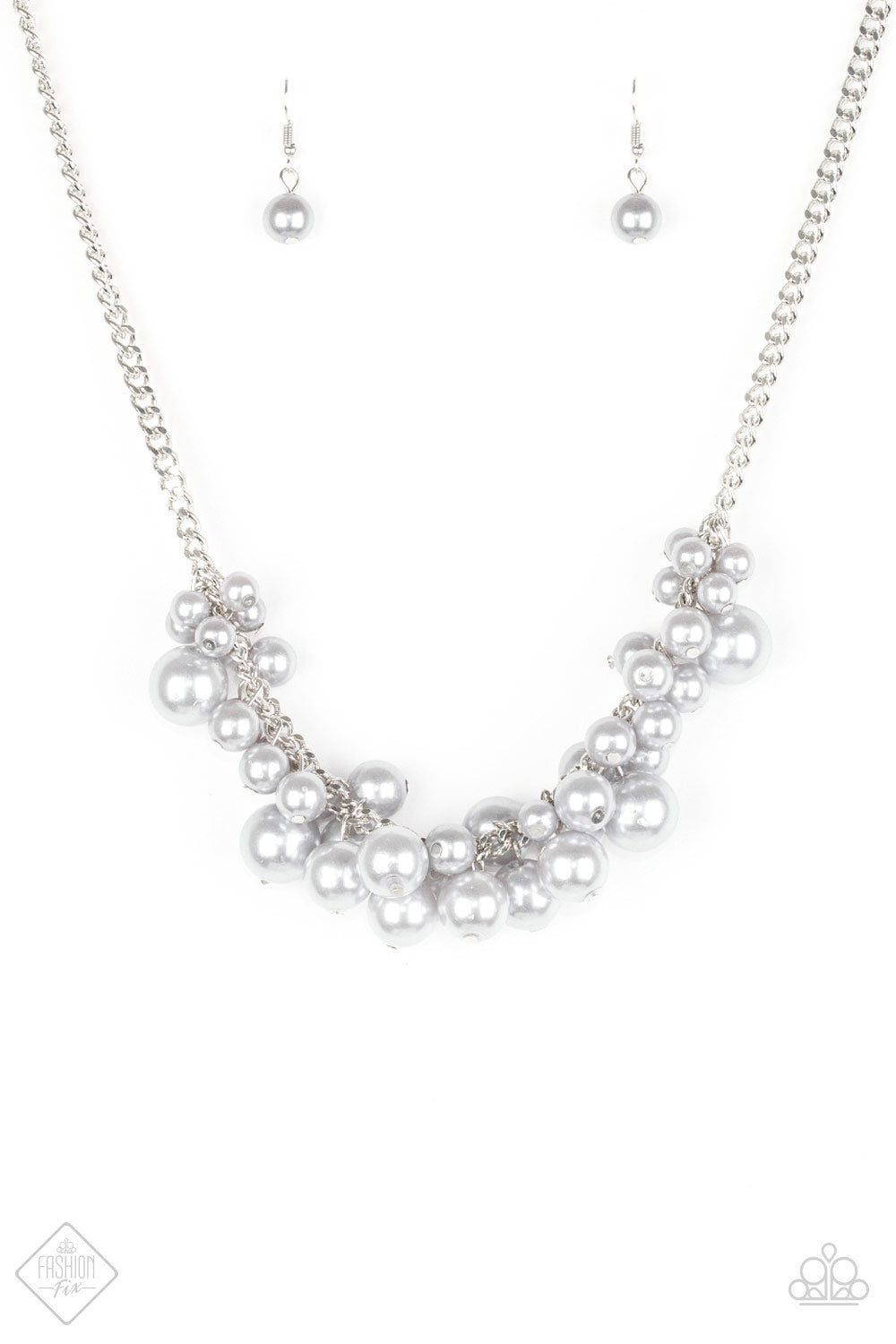 Varying in size, bubbly pearls cascade from the bottom of a bold silver (or gold) chain, creating a dramatically clustered fringe below the collar. Features an adjustable clasp closure.