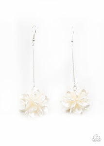 Featuring faceted surfaces, pearly white teardrop beads delicately cluster at the bottom of a dainty silver chain for an elegant look. Earring attaches to a standard fishhook fitting.
