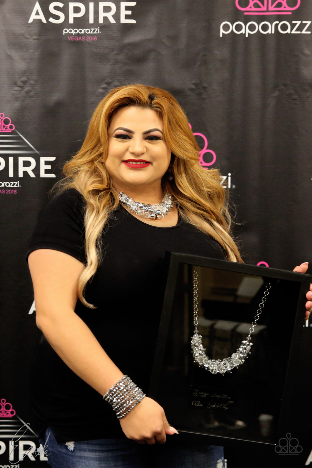 Sparkling crystal-like beading boldly collides with metallic beads featuring light-catching faceted edges to create a gorgeous pendant that falls just below the collar. The beads gradually increase in size towards the center of the design, coalescing into a blinding mix of glitz and unapologetic shimmer. Features an adjustable clasp closure.